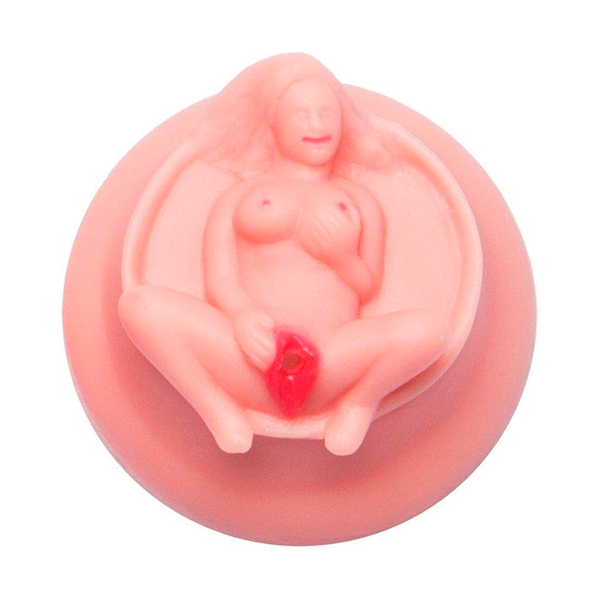 Una tapa para lata de cerveza o refresco, con forma de vagina y una abertura para que salga el líquido. Una pequeña broma divertida.